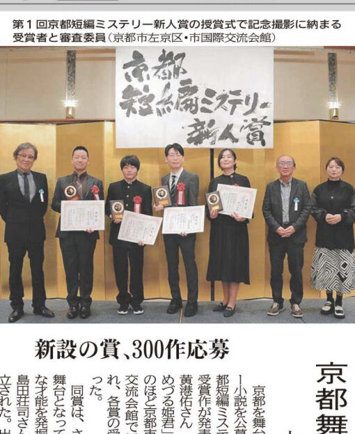 京都新聞に「京都短編ミステリー新人賞」第1回授賞式が掲載されました